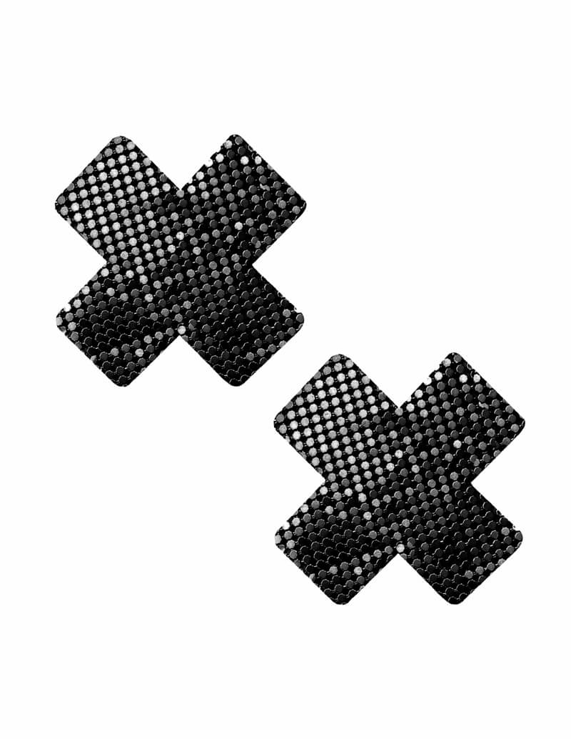 Make a bold statement with these fierce chainmail-inspired X pasties in glossy black. Designed with hypoallergenic, latex-free adhesive, they stay put for 10–12 hours of fearless fun. Perfect for festivals, parties, or private play, these self-adhering pasties are as easy to apply as they are hard to forget.
