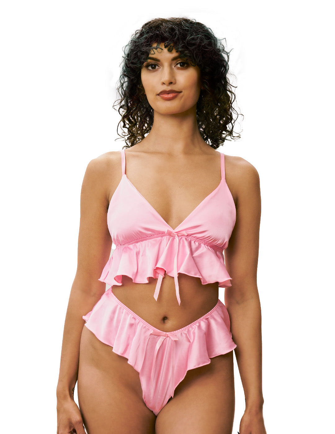 Stretch Satin Tie Front Cami & Flutter Short Set