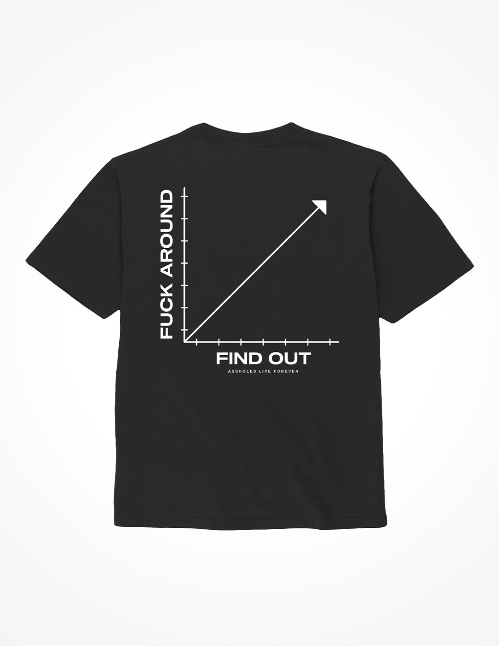 Class is in session with the ALF “FAFO Chart” T-Shirt—a perfect mix of savage and science. This black cotton tee features the iconic “F*ck Around and Find Out” graph on both front and back, transforming a viral meme into a wearable warning. Whether you're schooling someone in real life or just repping hard truths, this tee speaks fluent consequences.