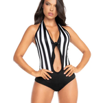 Take control of the game in the Sexy Referee Tie Front Halter Romper - the perfect mix of authority and allure. This black-and-white romper features a playful tie-front detail and a halter neckline that flatters your shape. With medium coverage and a comfortable, adjustable fit, you’ll feel confident calling the shots at any Halloween event. Whether you're calling fouls or blowing the whistle, this look guarantees you’ll be the center of attention. Step into the spotlight and be the most talked-about referee at the party!