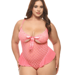 Cute meets cheeky in the Aubrielle Diamond Mesh Flutter Teddy, where playful charm and sexy details collide. Designed with a flocked diamond mesh and an open cup silhouette, this teddy shows off just enough while keeping things soft and seductive. The satin bow tie at the center adds a flirty finish, while the ruffled trim and thong back turn up the tease. With adjustable straps and underwire support, this look fits like a dream and feels even better. Whether you're gifting yourself or someone else, this teddy is pure lingerie magic.
