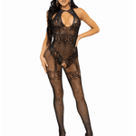 Elevate the allure with Leg Avenue's Seamless Rhinestone Fishnet Bodystocking. This exquisite piece boasts a captivating lace panty and garter belt design, seamlessly blending curve-enhancing fishnet with delicate floral lace for an irresistible and crotchless lingerie look. Crafted from stretchy, breathable, see-through lingerie fabric and adorned with expertly placed hand-laid rhinestones, featuring a seductive halter neck, it's the perfect choice for unforgettable moments of seduction.