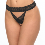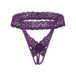 - Alluring crotchless panty with an open-back design