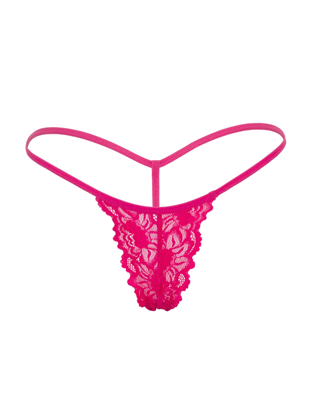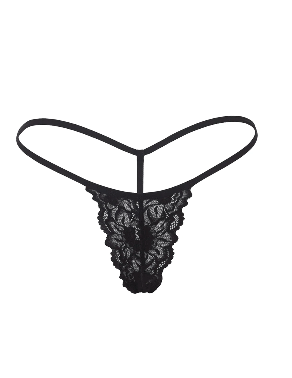 Dare to go minimal with the Karina Stretch Lace Thong. Designed to tease, this ultra-thin G-string features delicate galloon lace and barely-there elastic straps for that perfect blend of sexy and sleek. Whether you're dressing up or undressing down, this thong brings serious heat with effortless charm.