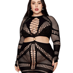Unleash your inner seductress with the Seamless Opaque Net Long Sleeve Cut-Out Chemise, a daring mix of edge and elegance. The fusion of novelty fishnet and opaque panels creates a bold contrast, sculpting your curves while leaving just enough to the imagination. Long sleeves with built-in finger loops add a sleek, high-fashion touch, while slimming side cutouts take this look to the next level. The organic shape ring connector ties it all together, serving up an unexpected, statement-making detail. Perfect for when you want to own the night—or keep things dangerously intimate.