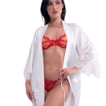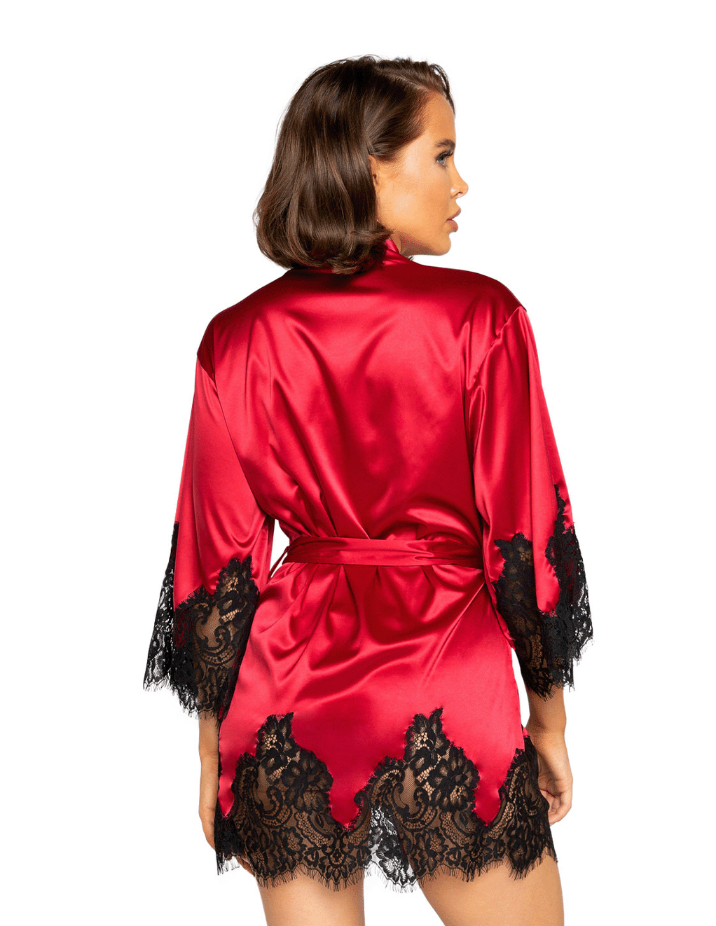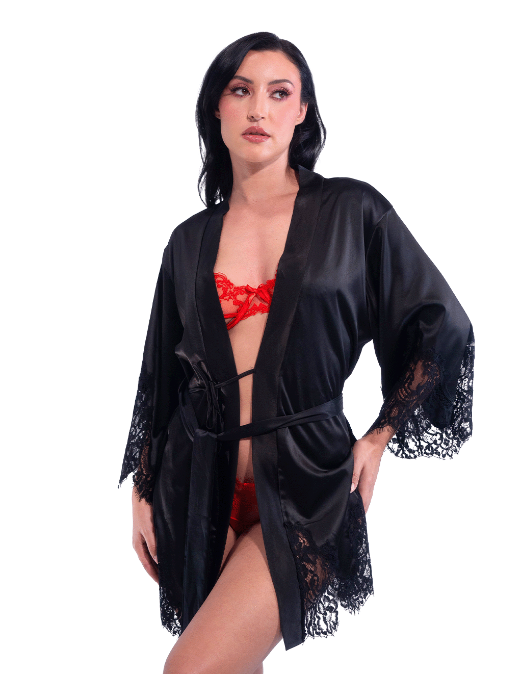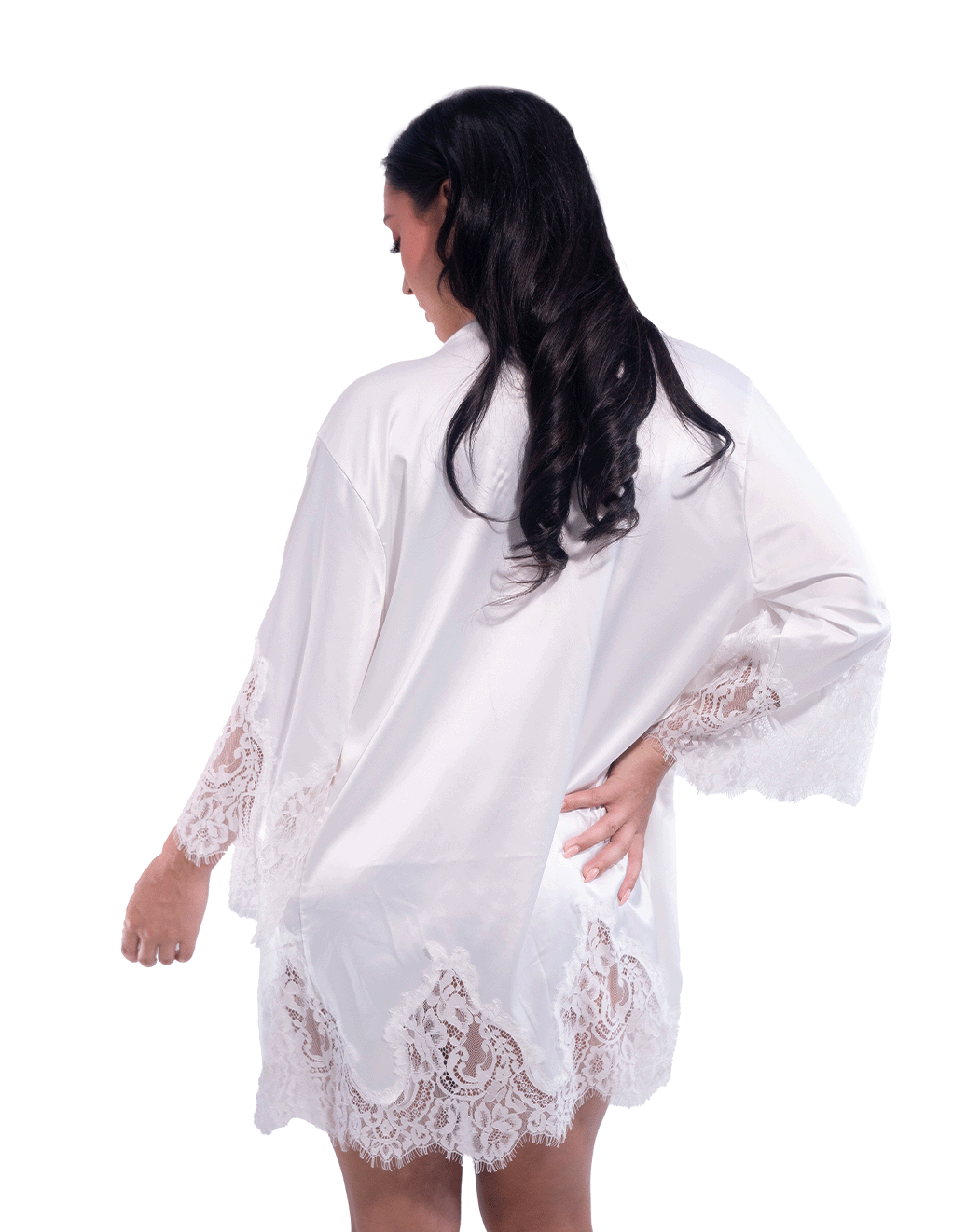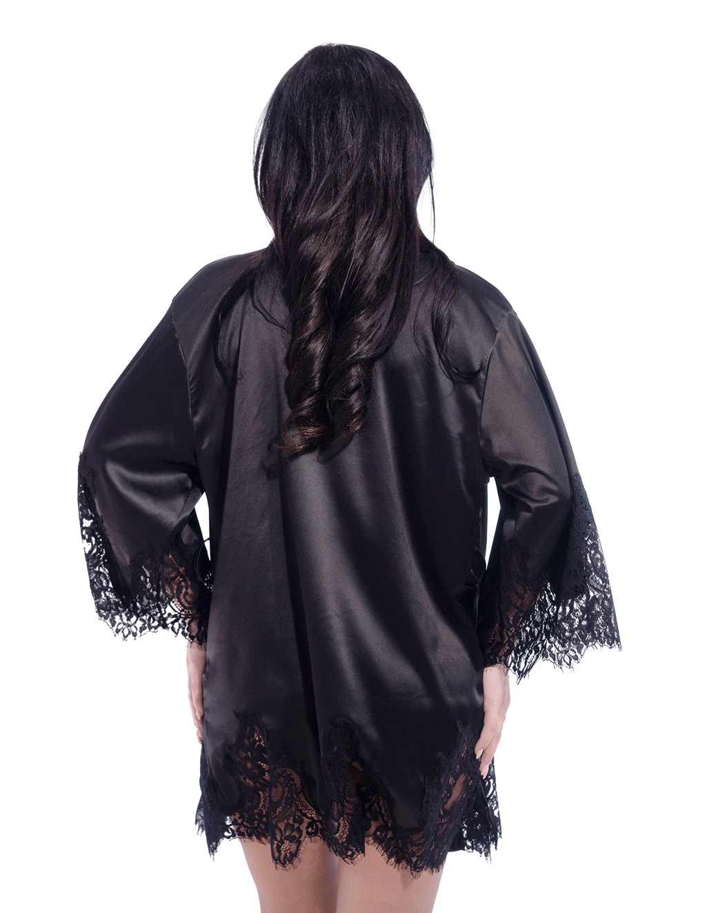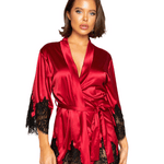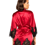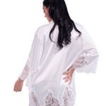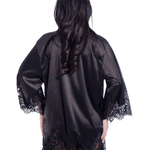 Short Satin Kimono Robe w. Eyelash Lace Sleeves